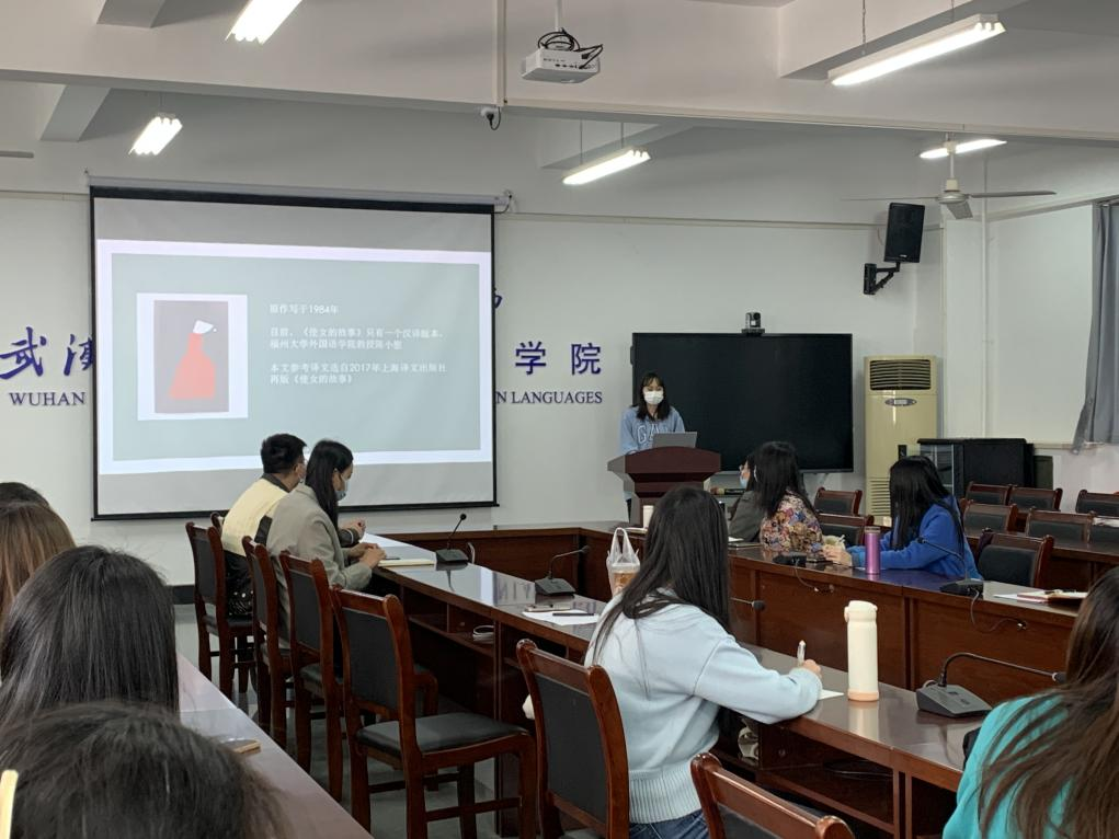 接着,陈奇敏副教授进行了点评:1.解答了左灿同学关于女性主义和女权主义的区别问题。2.解答了肖博文同学的疑问,罗可伊所讲的几种翻译策略并不是女性主义翻译策略所特有的。3.主讲人在汇报的时候要先把原文读一遍,给时间让老师同学看。4.选题时尽量结合专业,可以中英对照。