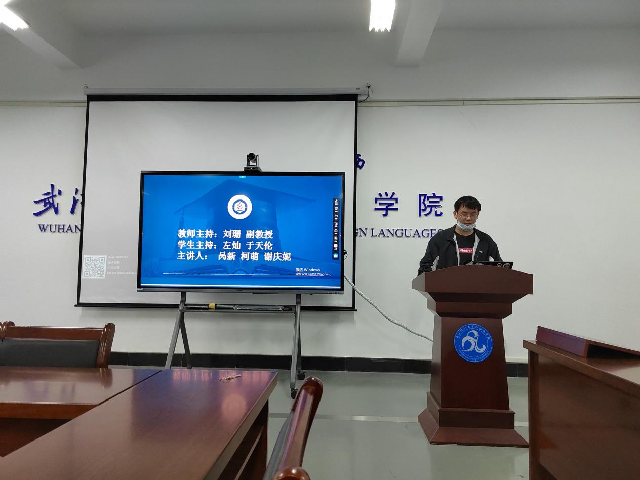 本次论坛员工主持为于天伦和左灿同学,主讲人是21级研究生呙新、柯萌、谢庆妮,论坛的主题是“文学翻译”。论坛分为三个环节,首先,主讲人进行主题汇报,然后是自由讨论时间,最后与会导师进行点评。
