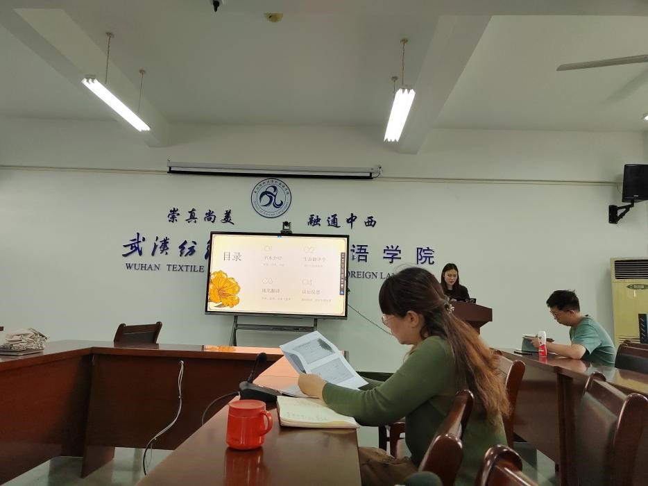 本次论坛的员工主持为柯萌和郑震同学,主讲人是21级黄雨萱、代焦、涂晶晶,论坛的主题是“文学翻译”。论坛分为三个环节。首先,主讲人进行主题汇报,然后是自由讨论时间,最后与会导师进行点评。