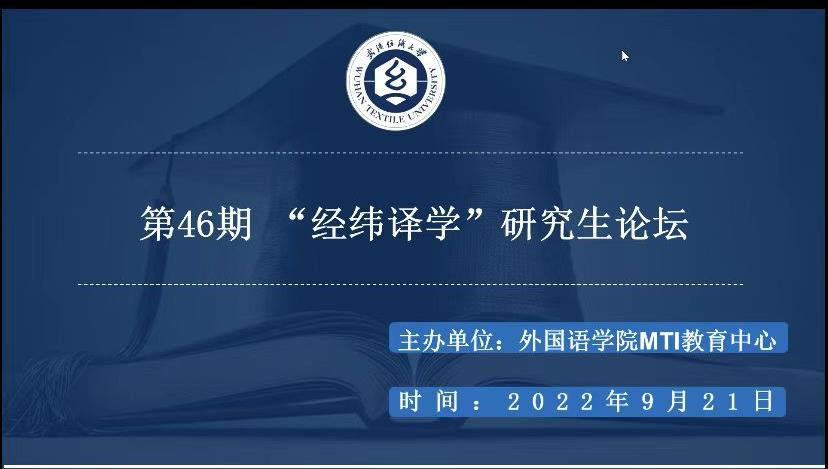 2022年9月21日晚,yl6809永利集团成功举办线上第46期“经纬译学”研究生论坛,陈芬博士担任此次论坛特邀主持,员工主持为21级MTI研究生刘敏和郭文龙,三位主讲人分别是21级MTI研究生罗可伊、李欢和沈逸。出席此次论坛的有yl6809永利集团经理谭燕保教授、副经理刘方荣副教授、周丹教授、林莉教授、赵伟副教授、刘珊副教授、柯细香副教授、陈韵如副教授、蔡倩副教授和陆雪芹副教授,21级和22级全体MTI研究生参加了此次论坛。