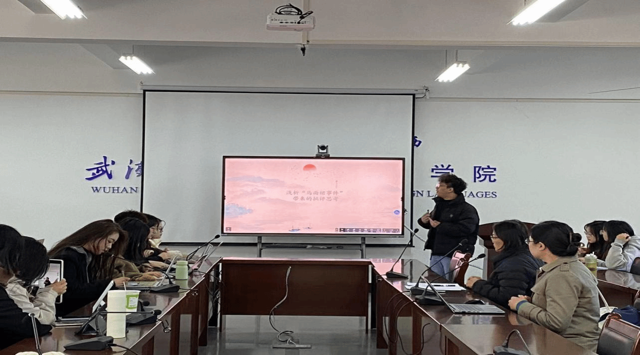 首先汇报的是孙境阳同学,他汇报的主题是“浅析‘马面裙事件’带来的批评思考”。 首先他对马面裙做了简要介绍,让同学们对马面裙的起源、款式等有了基本了解,然后针对“马面裙抄袭事件”进行回顾,对其中衍生出来的文化挪用问题进行了深刻剖析。他认为中国传统文化之所以会被误认为其他国家的艺术特色,是因为中国文化走出去的措施力度仍不够,我们急需建立文化自信,让世界看到、认识、了解中国文化。最后他呼吁作为一个翻译专业的研究生,我们更应当将思想扎根于本土文化,并立志将中国文化传播出去,让世界了解中国传统文化的魅力。