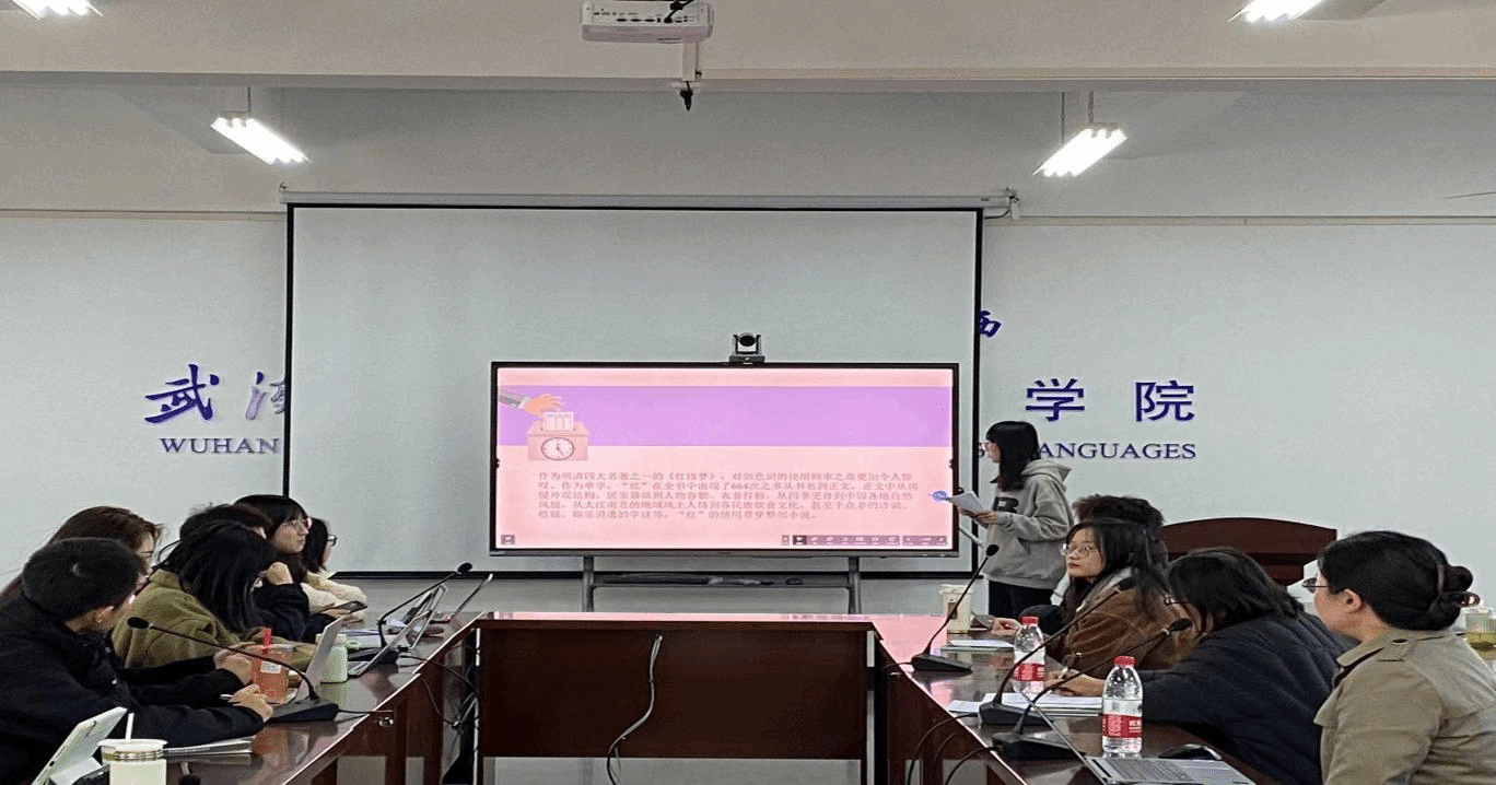 同时林莉教授表扬了樊新钰同学结合自己的兴趣和校本特色进行翻译探讨,也提出了在对“红”的研究方面深度需要进一步加强。最后她鼓励我们作为一名纺织类公司的翻译研究生,不仅需要加强对中国文化传播意识和提升自身翻译实力的同时,也需要加强在翻译领域研究的深度和广度,将自己的知识运用到专业实践,将翻译专业的发展同时代脉搏紧密相连。