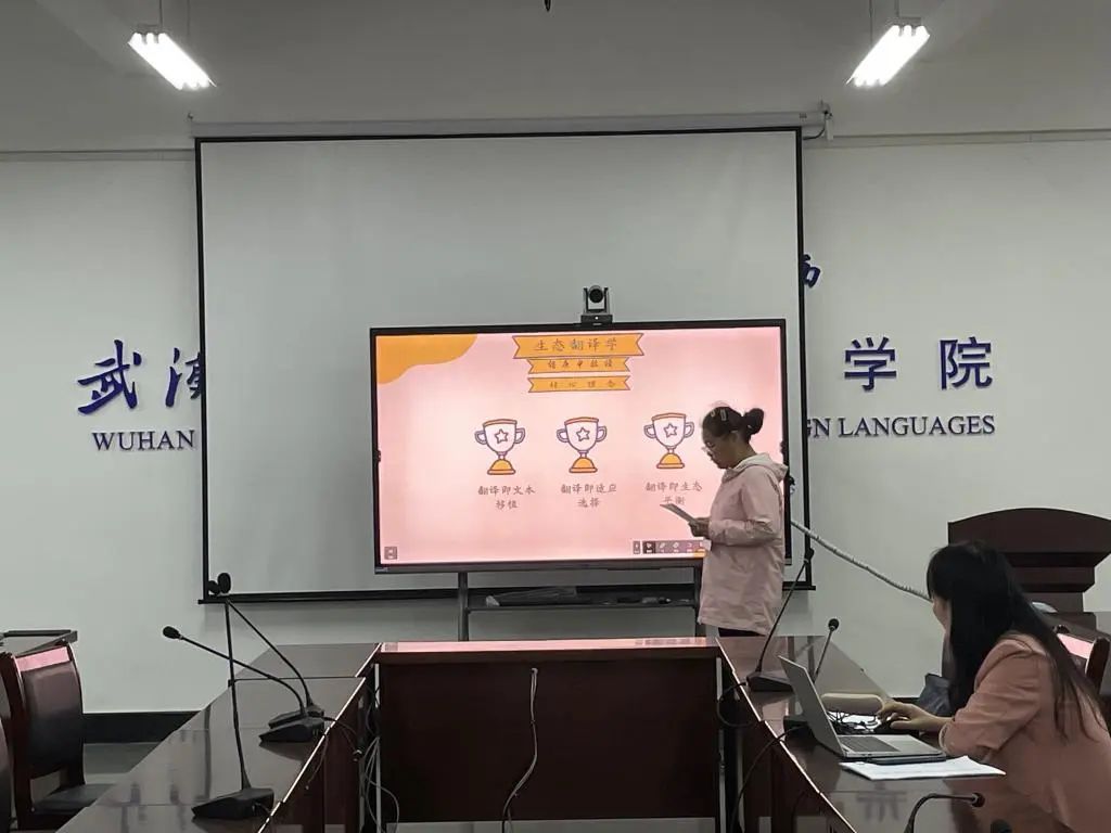 第一位汇报人何江坪同学从全译理论视角展开,探析纺织科技文本的英译。她首先简要分析了全译理论,然后将理论结合实践,与大家详细探讨了她在大创项目中翻译的纺织科技文本。最后,汇报人向我们分享了其此次翻译项目的心得,总结了运用全译理论指导实践的方法,希望此次分享对大家能有所启发。