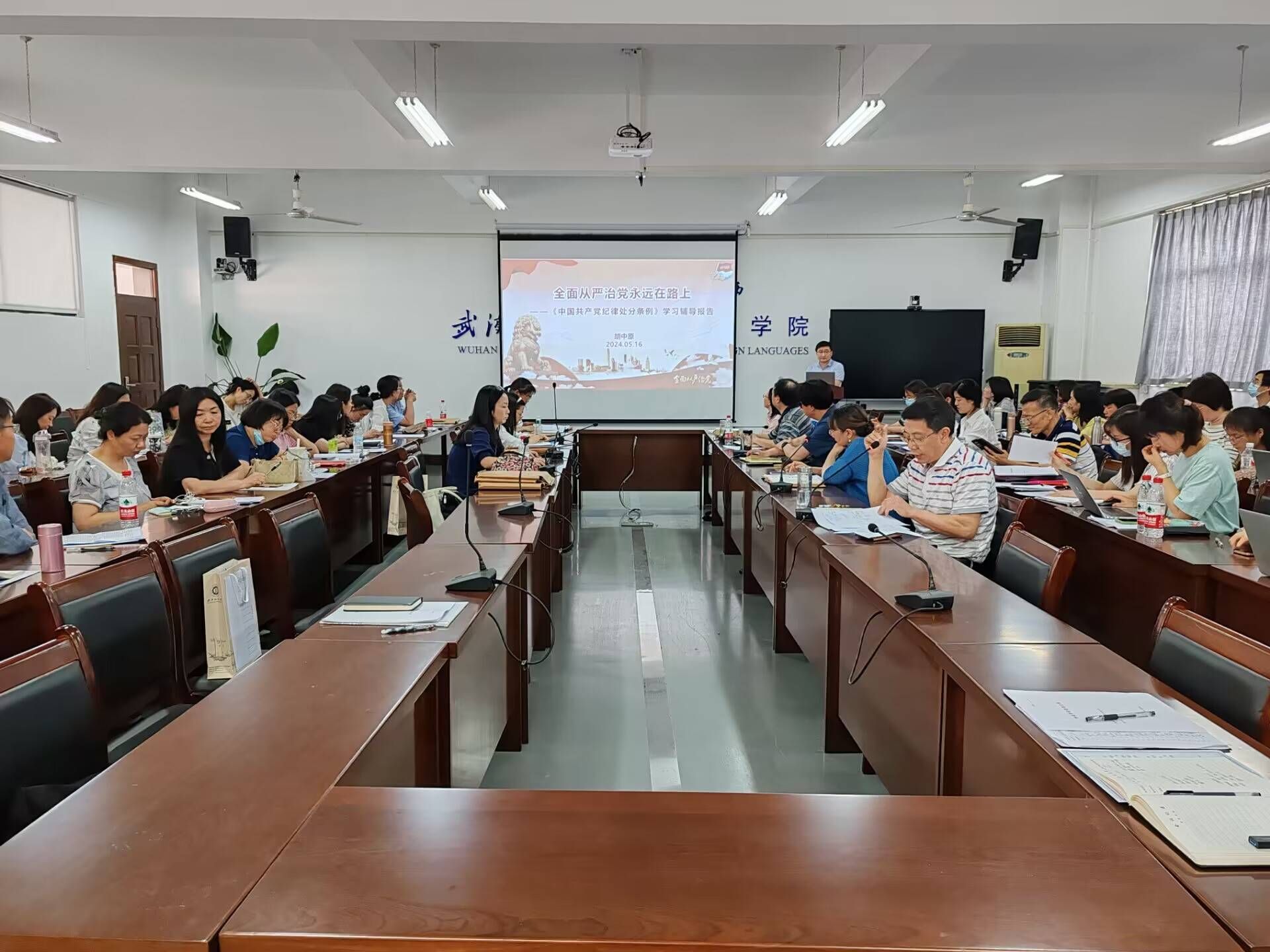 5月16日,公司党委书记胡中原为公司全体教职工党员讲授主题为“全面从严治党持续推进——《中国共产党纪律处分条例》学习辅导报告”的党课。