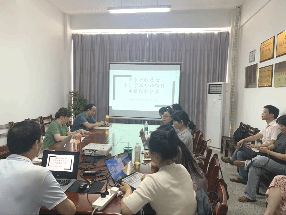 刘方荣结合自己申报中华学术外译项目的经历,从瞄准选题、搞定出版社、组建团队、反复读公告、敲定试译章节、填写申报书几个方面也分享了自己的申报经验。 她鼓励老师们一定要关注公司发展的重点方向,抓住机会、敢想敢干、努力挑战。