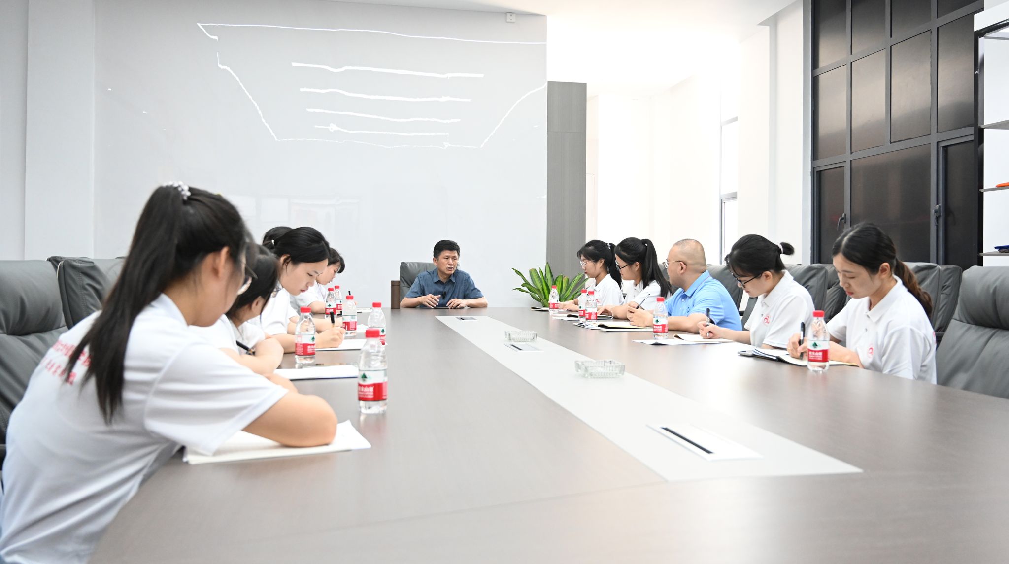 在蒲纺工委,副主任李斌和纺织服装企业家代表与实践团座谈,李斌结合三线建设历史和三线精神的传承,向实践团介绍了赤壁蒲纺片区纺织企业的发展历史、区位优势和未来规划,表示欢迎永利集团的同学们来到蒲纺,结合自己的专业优势,把蒲纺的故事、红色纺织的故事和三线建设的故事讲好。
