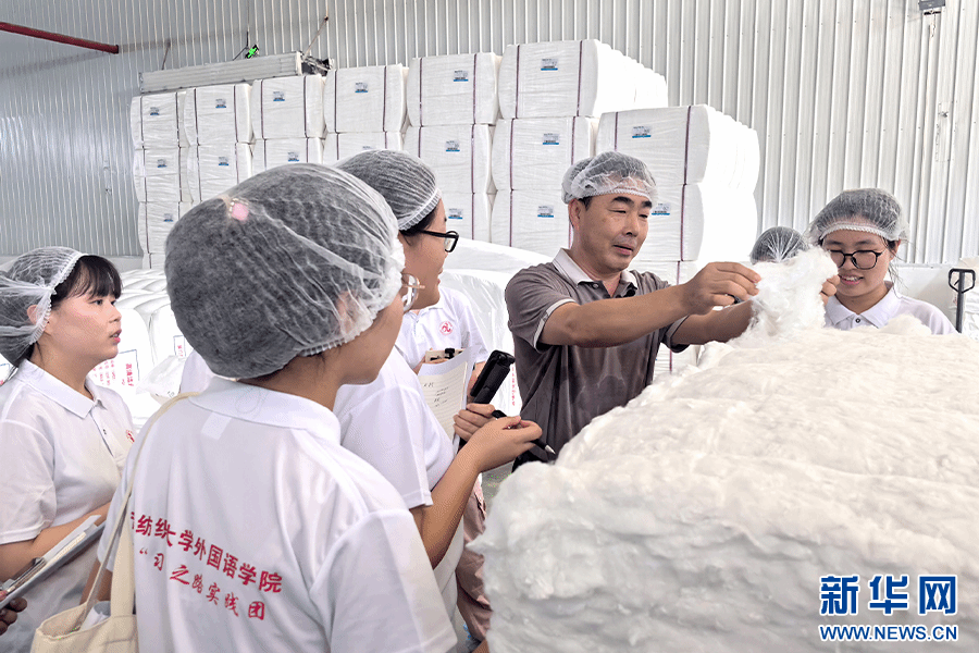 在湖北祥源特种布有限公司,赤壁市纺织服装产业协会会长余世贵向同学们讲述了由现代纺织工艺技术制作的特种布在火场救援、特种作业、防火阻燃等方面发挥的特殊作用。在恒瑞非织造材料有限公司,董事长刘城镇为员工们展示了通过新型生产工艺制作的无纺布在面膜、湿纸巾、棉柔巾、尿不湿等产品上的应用。