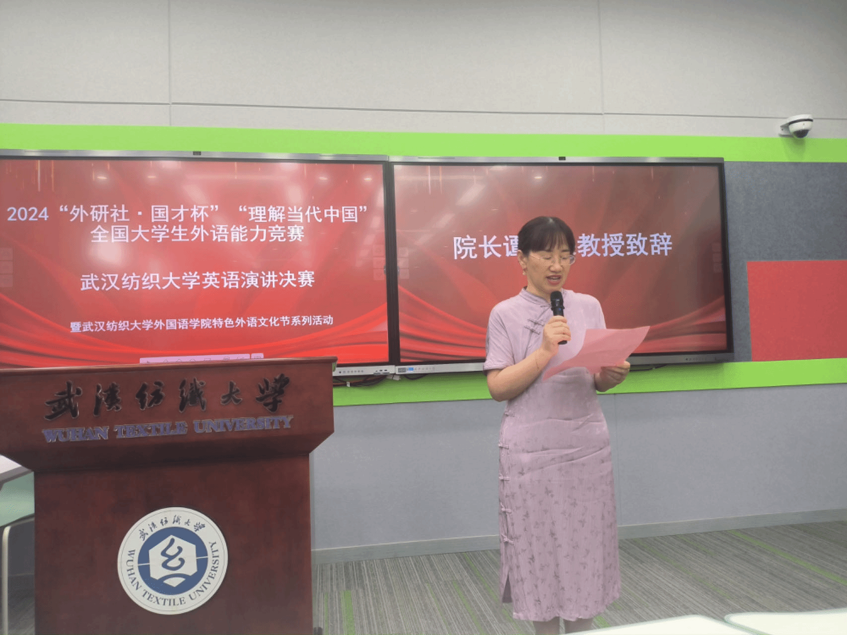 本次比赛旨在提高员工的外语表达能力,用英语生动传播中国故事、中国智慧,助力培养有家国情怀、全球视野、专业本领的国际化高层次外语专业人才。比赛现场座无虚席,选手开讲前,经理谭燕保教授首先致辞,谭经理表示本次比赛不仅是一场语言的较量,更是一次思想的碰撞。她鼓励员工们继续努力学习,用外语讲好中国故事,传播中国声音。