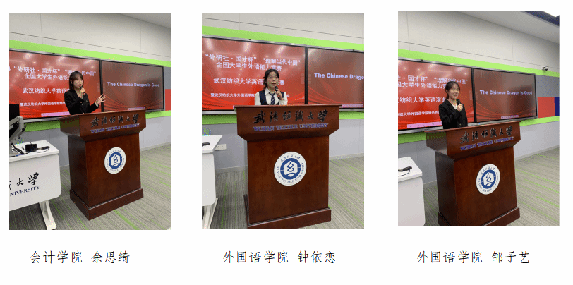 随后,16名决赛选手以流利的英语,围绕“The Chinese Dragon is good”这一主题,展开了精彩纷呈的演讲。选手们用他们的服装、语言、声音、表情、动作,展现了他们对家国形象的敬畏,对传统文化的热爱,对交流沟通的渴望,对未来中国的展望。