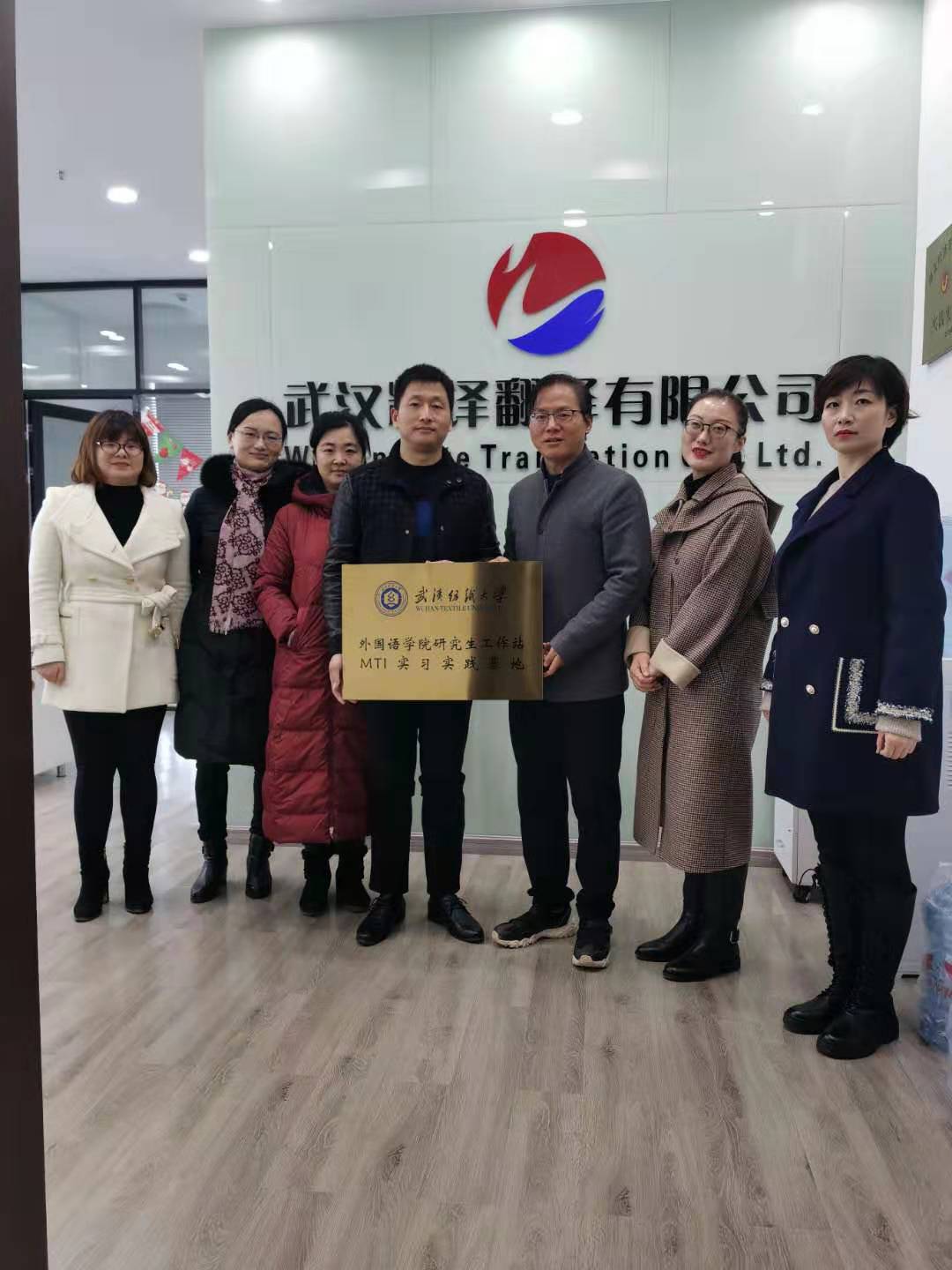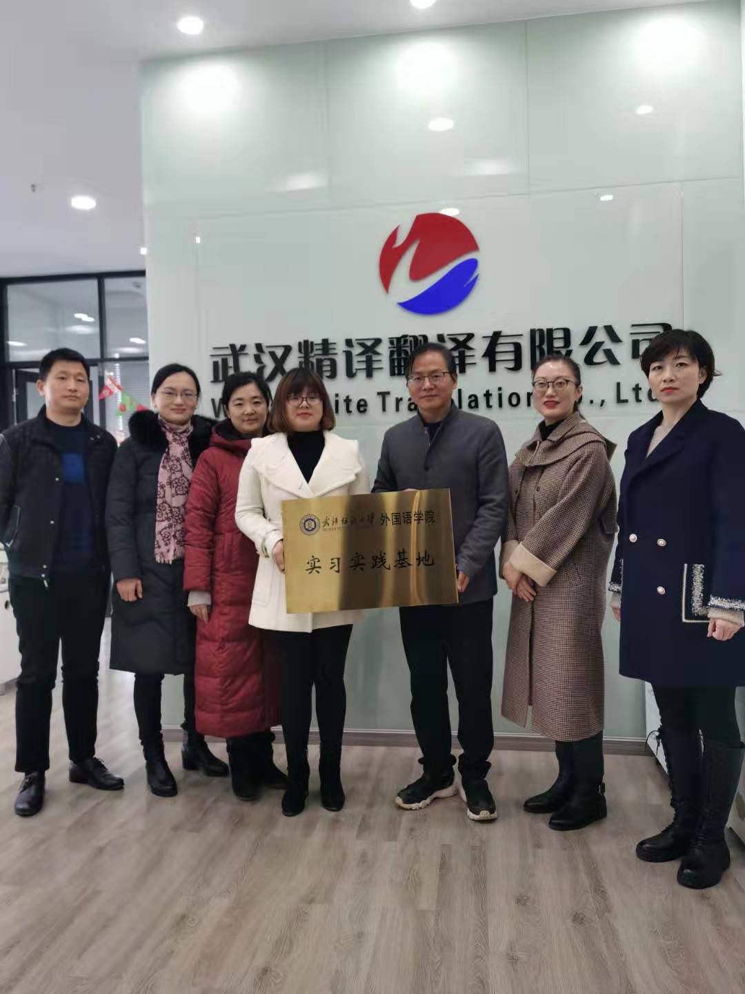 临近寒假之际,公司柯群胜副经理带领MTI教育中心副主任华敏、英语系副主任唐娴和吴卉副教授、商务英语彭姿等一行前往武汉精译翻译有限公司,开展企业回访及毕业生跟踪调查相关工作,就员工实习实践基地进一步合作事宜进行洽谈,并举行了实习实践基地挂牌仪式。
