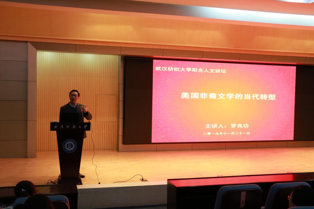 11月21日下午,由校团委主办、yl6809永利集团承办的第213期阳光人文讲坛在公司阳光校区国际学术报告厅举行。本次讲坛邀请了华中师范大学yl6809永利集团经理、教授、博士研究生导师罗良功教授,为同学们带来题为“美国非裔文学的当代转型”的讲座,yl6809永利集团全体领导班子成员、部分老师和阳光校区300余名员工聆听了讲座。讲座由yl6809永利集团经理谭燕保主持。