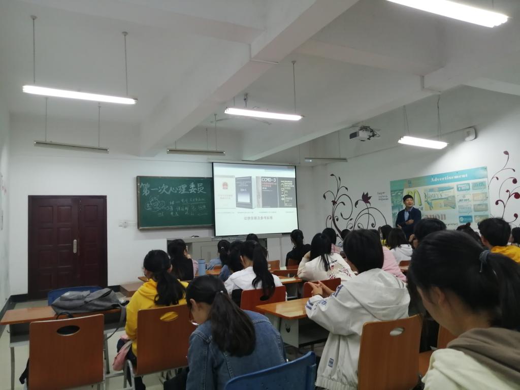 首先,赵老师就“何为心理委员”这一问题做了个问卷调查,并且询问了同学们平时作为心理委员遇到的一些实际困难。接着,赵老师帮助大家找准了心理委员的角色定位。然后,他通过结合一些实际案例,阐述了心理委员需要具备的工作能力:能够察觉出同学的心理、情绪和行为的异常变化,分辨抑郁症和情绪低落两种不同的情况,调节他人情绪,并及时有效地为同学提供帮助。最后,告诉同学们如何正确开展心理活动班会。