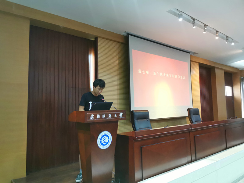 随后,辅导员阎浩老师播放了2019届优秀毕业生代表给2019级新生的寄语视频;2017级优秀员工李晓琳作为老生代表发言,2019级员工闸宇轩作为新生代表发言。