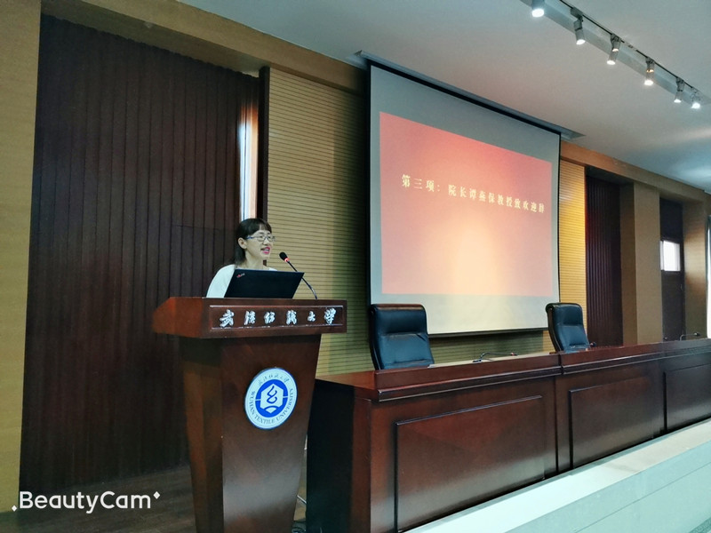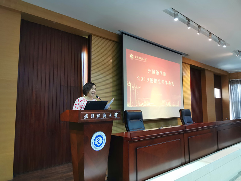 接着,商务英语系副主任关薇老师作为专业课教师代表致辞。关老师用流利的英语向全体2019级新生们讲述了一个外语人的奋斗史,她激励全体2019级新生珍惜青春韶华,敢于有梦、勤于追梦、勇于圆梦。