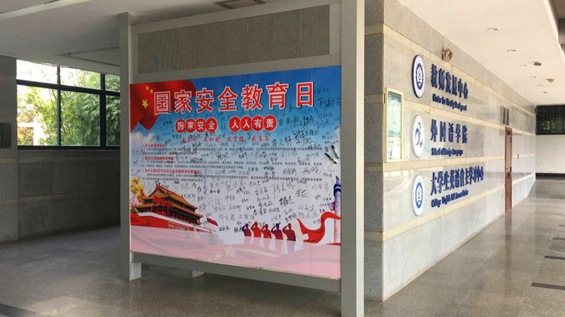 4月15日上午,公司在阳光校区崇文楼一楼大厅设立“国家安全 人人有责”、“我关心、我知晓、我掌握、我参与”国家安全主题签名墙,公司全体师生纷纷驻足签名。公司商务英语专业11801班团支部书记、班长陆试宏表示,通过公司组织开展的系列国家安全主题教育活动,他不仅学习掌握许多国家安全相关的知识,同时还增强了自身的国家安全意识,强化了青年老员工维护国家安全的使命担当。