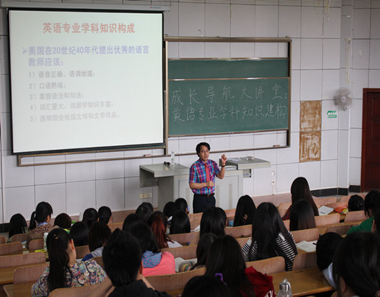 知识建构对学好专业有怎样的帮助?4月23日下午两点,“阳光学者”郭洋生博士应邀作客校团委主办、yl6809永利集团承办的“成长导航”讲座,在7教T102教室为全校300多名学子带来了以“英语专业学科知识建构——从自身经历说起”的专题报告。