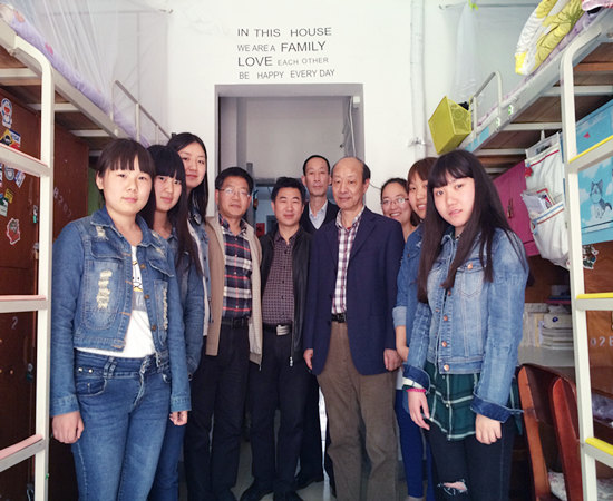 (校领导深入寝室与结对宿舍员工们畅谈学习生活)