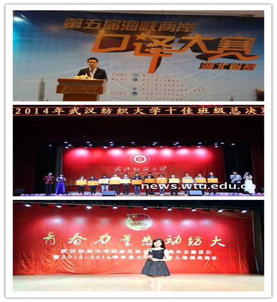 其中王鹏远同学荣获第五届海峡两岸口译大赛湖北省决赛一等奖、荣获中央电视台“希望之星”英语风采大赛湖北省总决赛一等奖、荣获全国老员工英语竞赛专业组一等奖;徐迎同学荣获全国老员工英语竞赛专业组一等奖。员工在重要专业赛事上所获奖项稳步提升,全年员工参加省级以上专业英语相关竞赛获奖达40余项。华妤琪荣获2013-2014年度“永利集团十佳老员工榜样人物“最奉献奖”,谷梦春和公司英语志愿者服务基地荣获提名奖。英语11101班被评为“公司十佳班集体”。