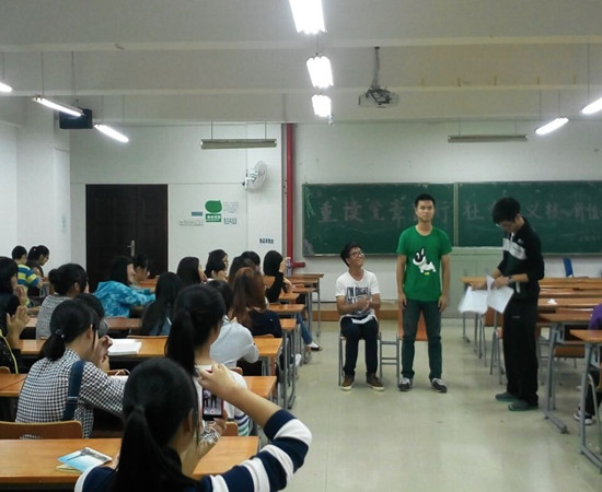 首先,班级团支书潘杏花向同学们介绍了社会主义核心价值观的主要内容,使同学们充分理解了其中“富强、民主、文明、和谐、自由、平等、公正、法治、爱国、敬业、诚信、友善”等各项含义,以激励他们在今后的学习生活中主动加强自身建设。其次,此次班会也号召员工在成长成才的过程中,养成良好的道德行为规范,既要做中华传统美德的传承者,也要做社会主义核心价值观的践行者。接着,同学们以诗歌朗诵、歌曲演唱、以及小品表演等方式分享了自己对社会主义核心价值观的感想。最后,为了响应公司“争做‘四有’教师•‘十大美语、十条禁语’”征集活动,公司学子也利用主题班会的时间,以寝室征集、班级集中座谈和心理情景剧等多种形式,开展教师用语征集讨论,形成包括“You earn your body”“一息若存,希望不灭”;“你不认真学习可以,但不要影响其他同学”等具有本院特色的教师“十大美语、十条禁语”。
