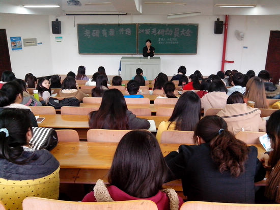 3月20日下午,在07-T101阶梯教室召开了外语公司2011级员工考研动员辅导会,公司经理何畏作《考研有我 一路同行》考研动员辅导报告。辅导员和100多名有志于考研的同学聆听了报告会。外语公司分党委副书记张鹏主持动员会。