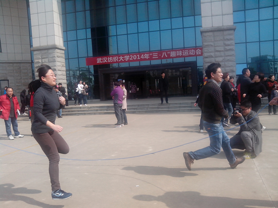 外教Kareima、Kareen两位老师代表公司参加了趣味接力项目。这两位老师不仅负责大学英语口语强训的教学工作,而且还负责英语专业2012级和2013级高级班的口语教学和指导老师。赛后,Kareima说:“这个比赛太好玩了,我还赢了条毛巾呢,希望公司多组织这样的活动,这样不仅能增强体质,而且能加强我们同中国老师的交流”。在3分钟8字跳绳比赛中,外院代表队默契配合,三分钟跳出了210个的好成绩。
