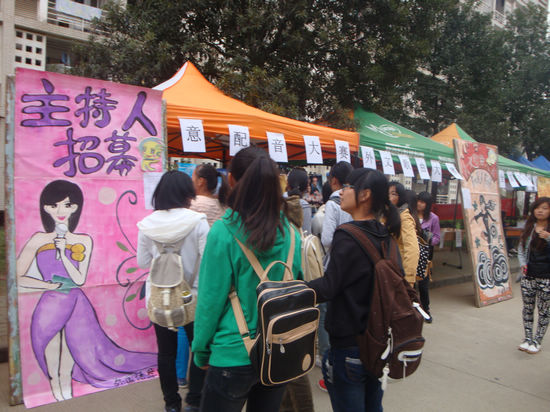 英语,这门神奇而魔幻的语言,自我们牙牙学语就听闻过它的叮咚和美妙。然而有这么一群莘莘学子,十年甚至数十年光阴里他们执着地与英语朝夕相伴,他们毅然把外语当做了自己闯荡世界的通行证……。10月16日,在万众期待下,永利集团十大校园品牌文化活动------第七届外语文化节正式拉开帷幕。第七届外语文化节之原声电影周暨创意配音大赛、双语主持人招募大赛、外文歌曲大赛、“外研社杯”全国英语写作大赛和“21世纪报”全国英语演讲比赛校园选拔赛以及赴美带薪实习文化交流会等多项活动和赛事报名已在公司阳光校区一食堂二食堂侧门、南湖校区一食堂门口如火如荼地进行着,全校各路“英豪”纷纷报名,准备“一展身手”,报名现场热闹非凡。