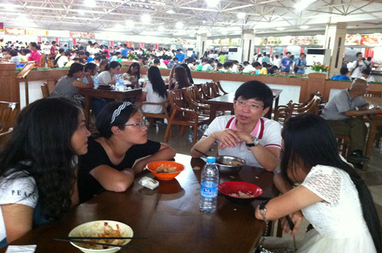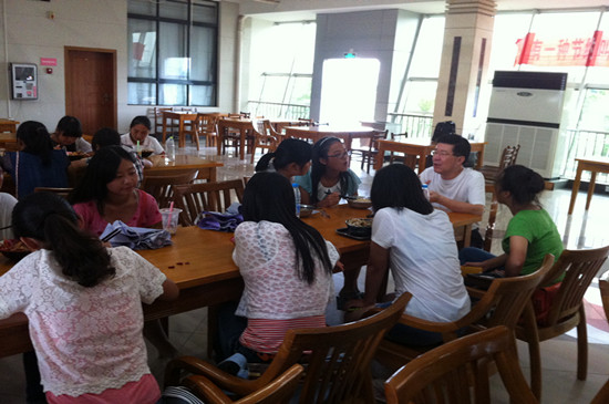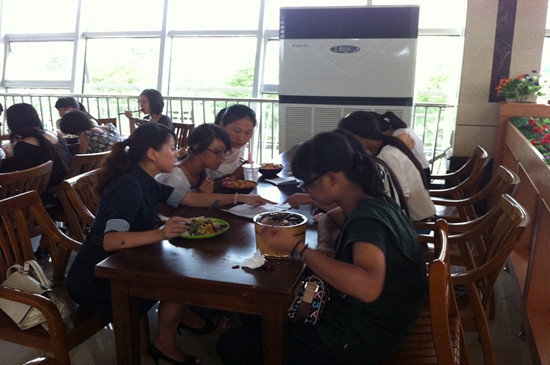 初次会餐,新生们虽略显羞涩,但是看到老师们的亲切态度和细心的询问,也渐渐的大胆起来。在欢快的进餐中,她们开始与老师敞开心扉,畅所欲言,展现出一种师生同乐的画面,其乐融融。何畏经理针对专业学习对同学们进行指导,他鼓励大家多阅读英语书籍,努力学好自己专业,做一个品学兼优的老员工。潘寅老师为新生介绍了老员工活中所需要注意的几点问题,建议同学们要充分利用大学里丰富的资源,如图书馆、自主学习室、团队等软硬件条件,充分学习,全面提高。面对新生们踊跃提出老员工活里的一系列问题,陈国新书记耐心倾听并为新生们一一解答,当听到新生对校园环境、师生面貌、专业学习等方面予以肯定时,陈书记也感到非常欣慰。还有公司柯群胜副经理、卫冬妹副书记,新生班主任韩征顺教授、刘方荣老师,英语系主任罗绮伦、钱茂华老师等,纷纷与员工围坐一起,淳淳教导。老师们关心并询问新生刚入学后能否适应新的环境、对公司和公司印象如何、有什么意见和建议、对专业学习感受如何等等,对同学提出的问题一一解答。