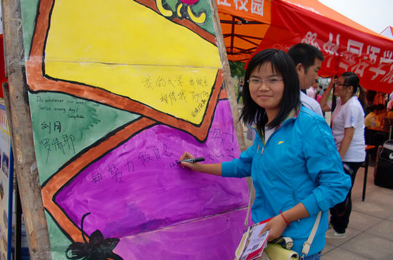迎新现场,2013级新生可以用马克笔在“我想对你说”迎新展板上用英文写下自己的个性签名,展现入学风采,“新生签名会”印记了大学新生活的“第一笔”。签名后,很多新同学站在留下寄语的宣传板旁边,与家长、现场专家学者、老师、志愿者一起合影留念。在“专家学者迎新咨询”处参与迎新的公司专家学者热情详细地讲解新生、家长所提出的公司专业设置、培养目标及就业方向等热点问题。此外,韩征顺教授一开学就主动要求参与迎新工作和担任英语21301、21302班的班主任,以便长期指引同学们地的成长,留日博士陈星每年都积极参与迎新工作,这些做法无不体现出公司专家学者对新同学的关切、培育之情。公司迎新志愿者们肩扛手提地帮助新同学拿行李,带领新同学到指定地点报到,安顿住宿,解答新生的各种咨询,给予温馨提示,为新同学传递了无限的正能量。