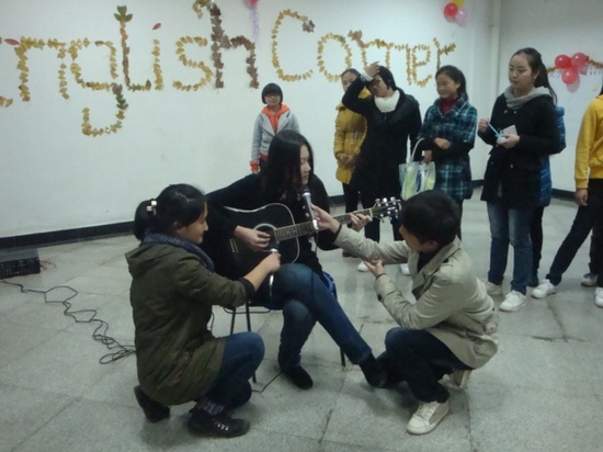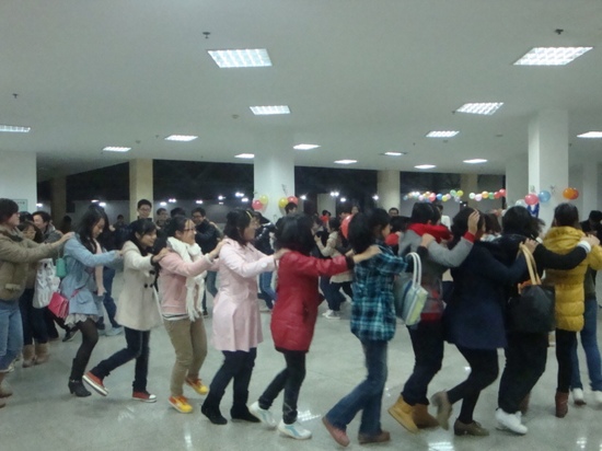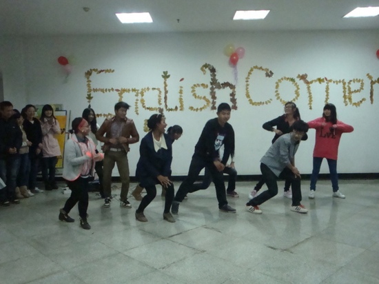英语角开始时,yl6809永利集团12级新生以一曲《江南style》劲爆热舞high翻全场。领舞者谷梦春以火辣的舞姿顿时点燃了全场同学的热情,燃起了全场的热烈氛围。外教Megan和Rebecca以及在场的诸多同学都被他的激情所感染,纷纷参与其中,与表演者共舞。外语协会准备的手语舞蹈《感恩的心》,更让同学们感受到了一股浓浓的感恩之情。
