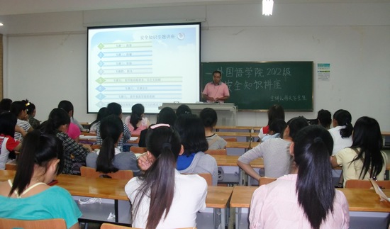 集团保卫处尚天飞老师从新生角度出发,用诙谐幽语的言语,详实生动的事例对广大新同学进行安全教育。他解读了《员工伤害事故处理办法》、《普通高等公司校园秩序管理若干规定》、《中华人民共和国治安管理处罚条例》,分析武汉市江夏区治安状况、校园周边环境的情况,提醒同学们高度重视的安全防范。尚老师还介绍了大学学习生活自我防范、自我保护的知识与措施,内容涵盖防火逃生、防偷盗、防骗防抢、出行安全及提防非法传销组织等,并结合近几年惨痛的实例教训,给新生同学们敲响警钟。