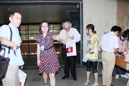 (公司英语志愿者为与会嘉宾调试电脑)