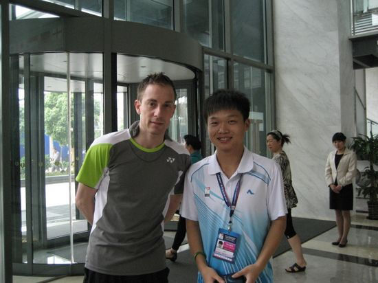 胡河涛、夏章冰同学在志愿服务培训期间,他们聆听了感动中国人物徐本禹讲解志愿精神,同时学习了外事礼仪、羽毛球专业知识、岗业知识。夏章冰同学被分派到了泰国队进行翻译工作;而胡河涛同学被分派到了苏格兰队进行翻译工作。随后,作为国际羽联CEO Toms Land的陪同口译员,与武汉市官员进行交流。