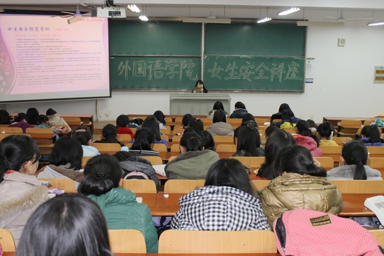 卫书记首先以“关于女性”的思考导入,并用一段视频来启发女生们对安全防范问题的关注。她从女生人身财产安全、人际交往安全两个方面出发,联系热点事件、典型案例详细讲述了关于女生的安全隐患和防范措施,并结合事例和问题总结提出了“行为规范,考虑细致,冷静应变”人身财产安全防范原则和“自尊、自重、自爱”的人际交往安全防范原则。