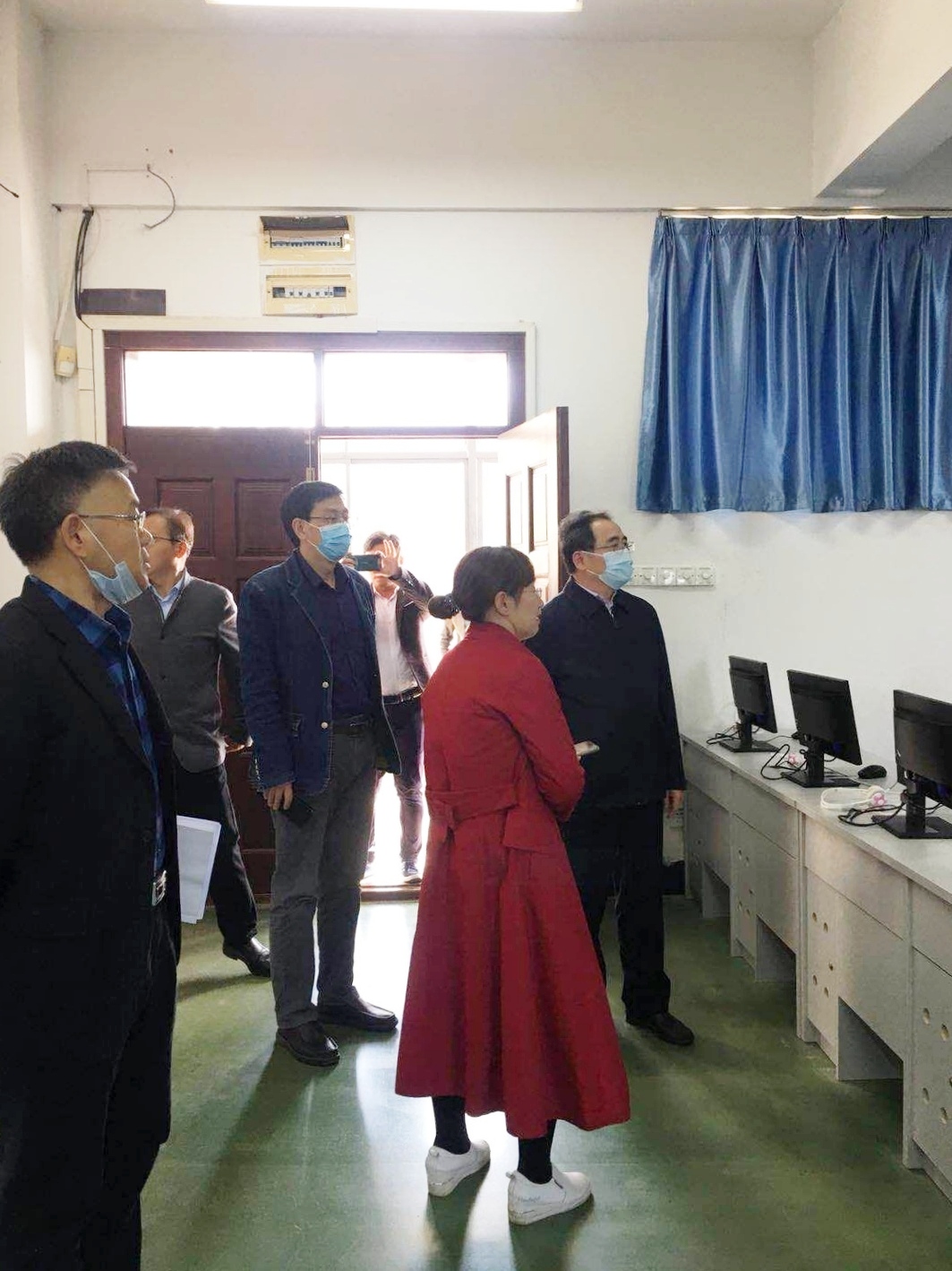 会前,田辉玉实地查看了公司同声传译、商务英语和翻译实训室,走访了老员工英语自主学习室,了解了公司办公场地和基本设施。