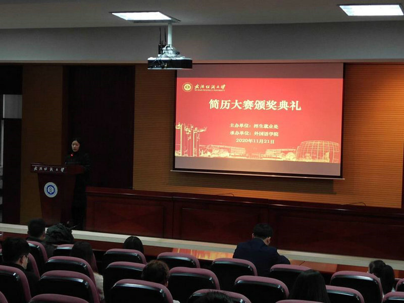 典礼开始,曾文静副处长代表主办方向获奖同学表示祝贺,同时勉励大家珍惜崇尚荣誉,直面挑战机遇,勇于展现自我。紧接着,5名获奖员工代表分别以自身的经历,从个人规划、设计思路、制作技巧等角度,分享了做好简历的体会和感想。随后,大赛全部获奖作品在大屏幕上进行了滚动展播,在场观众在直观对比中学习欣赏了各类风格作品的特点。最后,到场嘉宾分别为获奖同学颁奖并合影留念。