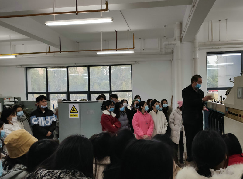 12月10日上午,《纺织英语》任课教师郑亚娟组织18级英语专业和商务英语专业员工,以及20级MTI员工,在公司实训北楼参观了纺织实验室的纺纱设备、织造设备、针织设备和非织造设备,实验室安排了四位老师分别进行现场讲解和演示,使员工深入了解了纺纱基本原理、织造基本原理、针织基本原理和非织造基本原理。员工表现出极大的好奇心和兴趣,个个跃跃欲试,有员工在织样机上亲自动手进行穿经引纬,尝试手工织布;还有员工在针织横机上织出了一条小围巾。