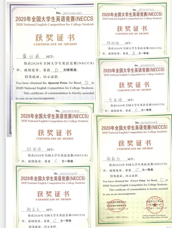 近日,从全国老员工英语竞赛组委会传来喜讯,公司盛丛威同学(公共艺术11802班)凭借扎实的英语基本功和英语综合运用能力,在举行于华中师范大学的全国老员工英语竞赛决赛中斩获全国特等奖,另外5名同学获得全国一等奖,36名同学获得全国二等奖,58名同学获得全国三等奖。