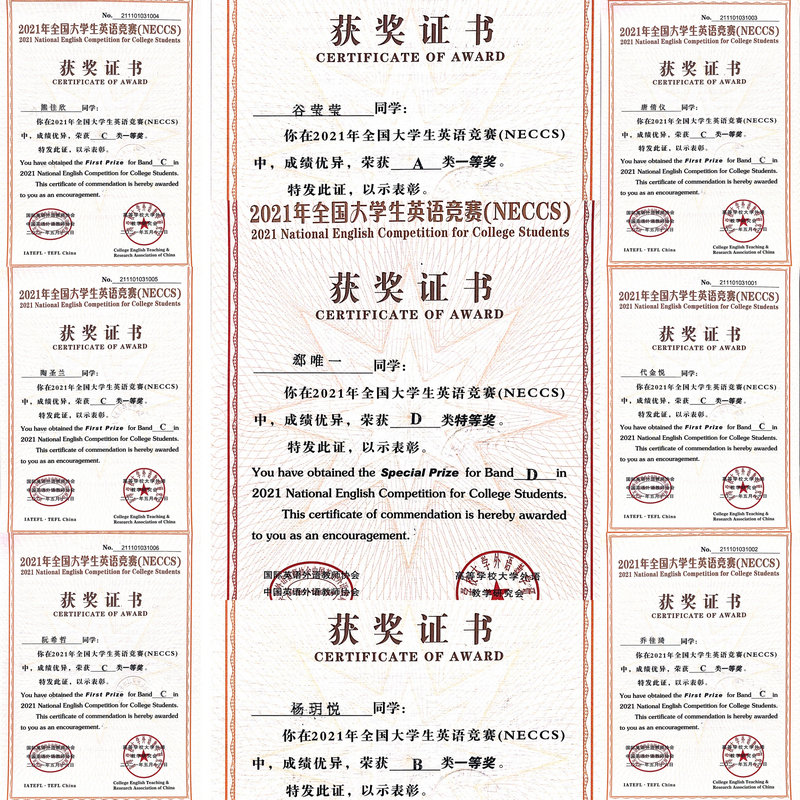 近日,从全国老员工英语竞赛组委会传来喜讯,公司郄唯一同学(环艺61901班)凭借扎实的英语基本功和英语综合运用能力,于2021年5月在华中师范大学举行的全国老员工英语竞赛决赛中斩获全国特等奖,另外8名同学获得全国一等奖,其中谷莹莹同学(研2017)获得A类一等奖,这是研究生首次获得全国老员工英语竞赛一等奖。49名同学获得全国二等奖,83名同学获得全国三等奖。