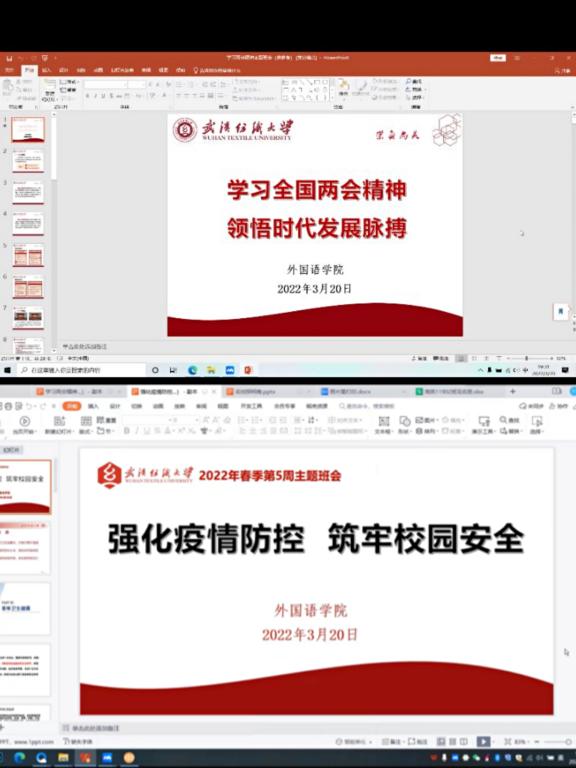 为促进员工学习两会精神,增强校园疫情防控意识。3月20日,yl6809永利集团组织全体班主任对各班开展“学习全国两会精神,领悟时代发展脉搏”、“强化疫情防控,筑牢校园安全”主题班会,同学们围绕会议主题展开了热烈讨论。