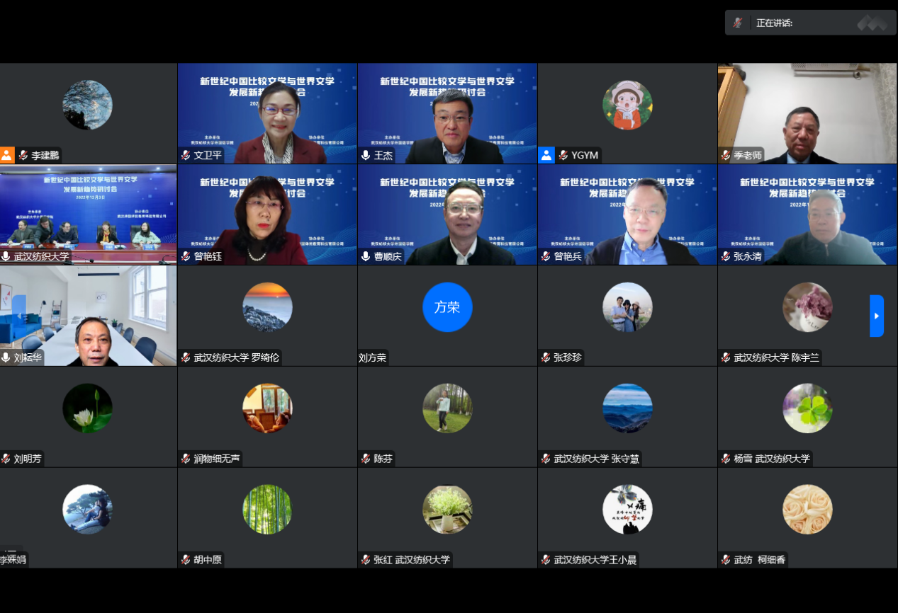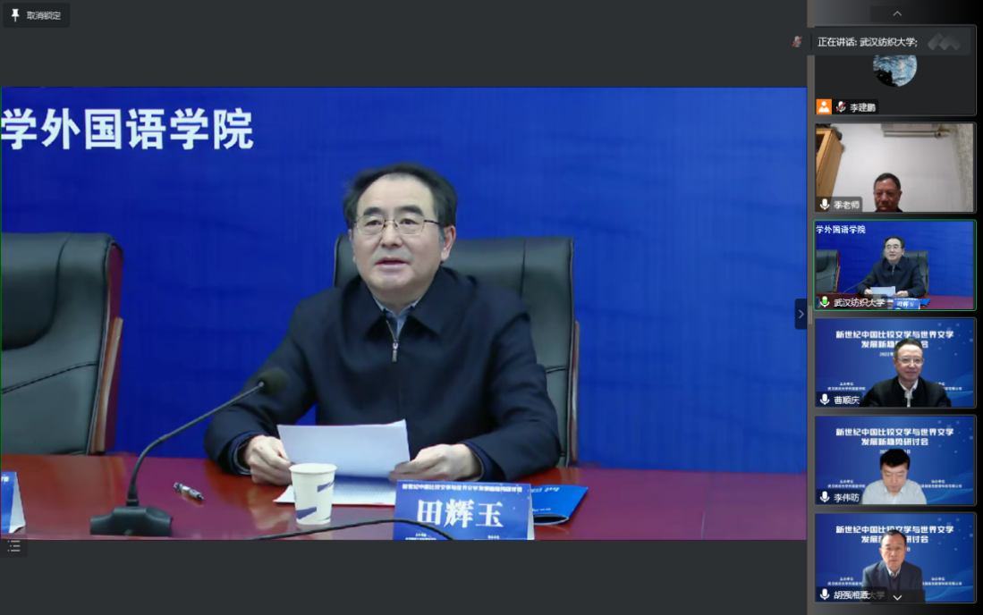 12月3日,由yl6809永利集团主办的“新世纪中国比较文学与世界文学发展新趋势研讨会”在线举行。来自复旦大学、中国人民大学、浙江大学、武汉大学、四川大学﹑湖南师范大学、湘潭大学及河南大学的相关学科专家和学者就多学科融合背景下的比较文学跨学科研究,中国比较文学研究的新走向﹑新特点,欧美各国现当代重要作家、作品研究以及马克思主义文论与中外文论比较研究等议题展开了广泛而深入的探讨。来自全国众多高校的教师及研究生参加了此次研讨会,公司党委书记田辉玉教授出席会议并致辞。大会由湘潭大学季水河教授和公司谭燕保教授共同主持。