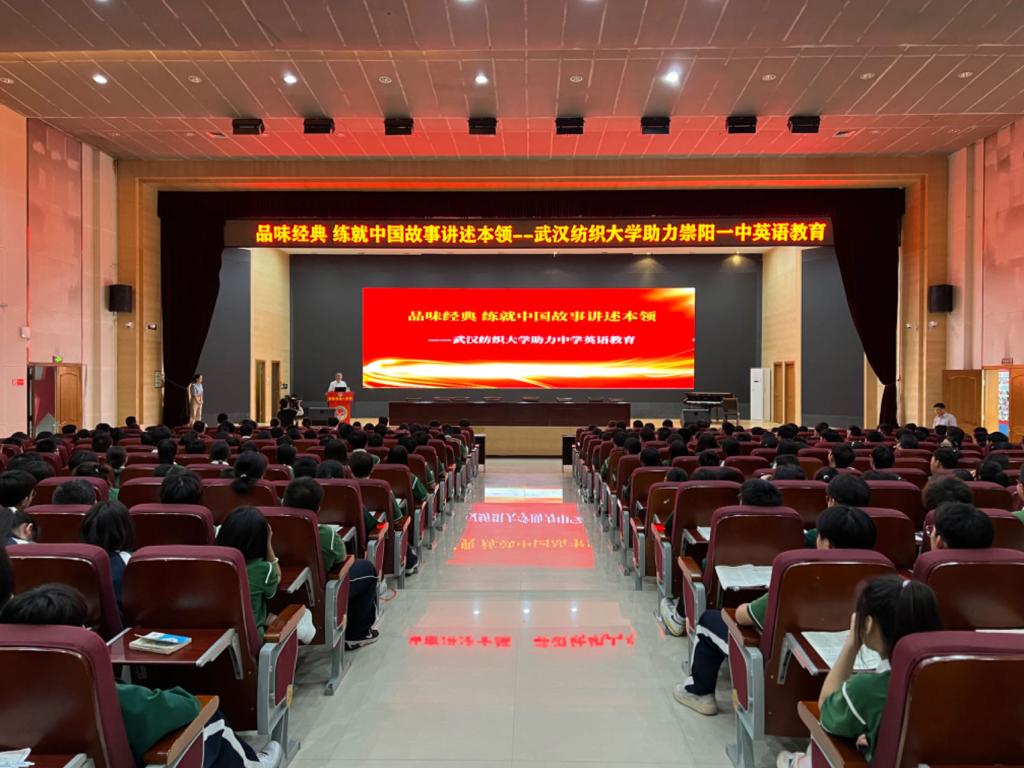 “品味经典 练就中国故事讲述本领”活动上,罗锦银结合纺大校训“崇真尚美”和崇阳一中校训“明德向学 健体尚美”共有的“尚美”,阐释两校人才培养的共同理念和文化传承的精神追求。结合自身经历,罗锦银与师生们畅谈读书、读好书、读经典书目的意义,鼓励同学们在双语经典阅读中传承优秀文化,汲取中国力量,以备将来同学们在更广阔的世界舞台上讲好崇阳故事、楚文化故事、中国故事。罗锦银向崇阳一中送上纺大2023届、崇阳一中2019届毕业生考研喜报,并代表公司为崇阳一中员工代表赠送了300余册英文书籍。同时,招就处向参会领导和高三年级班主任宣传招生政策,yl6809永利集团经理谭燕保为崇阳一中师生做了题为《英语学习的“真”与“有”》的主题讲座。崇阳一中600余名师生参与活动。