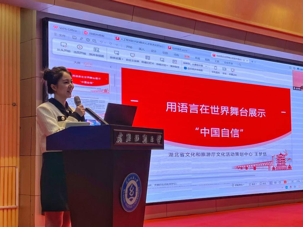 近日,第五届新时代翻译教育的使命与中国文化传播学术论坛在公司举行。yl6809永利集团2010级员工王梦恬受邀作大会主旨发言,她围绕“用语言在世界舞台展示‘中国自信’”的主题,阐释作为外语专业人才,如何用语言搭建中外交流桥梁,更好地展示中国自信提供实践参考和理论探讨,并分享了个人成长在外事活动中的经验。会间,王梦恬员工来到yl6809永利集团 读“习”有声 一站式员工社区,与同学们共话成长。