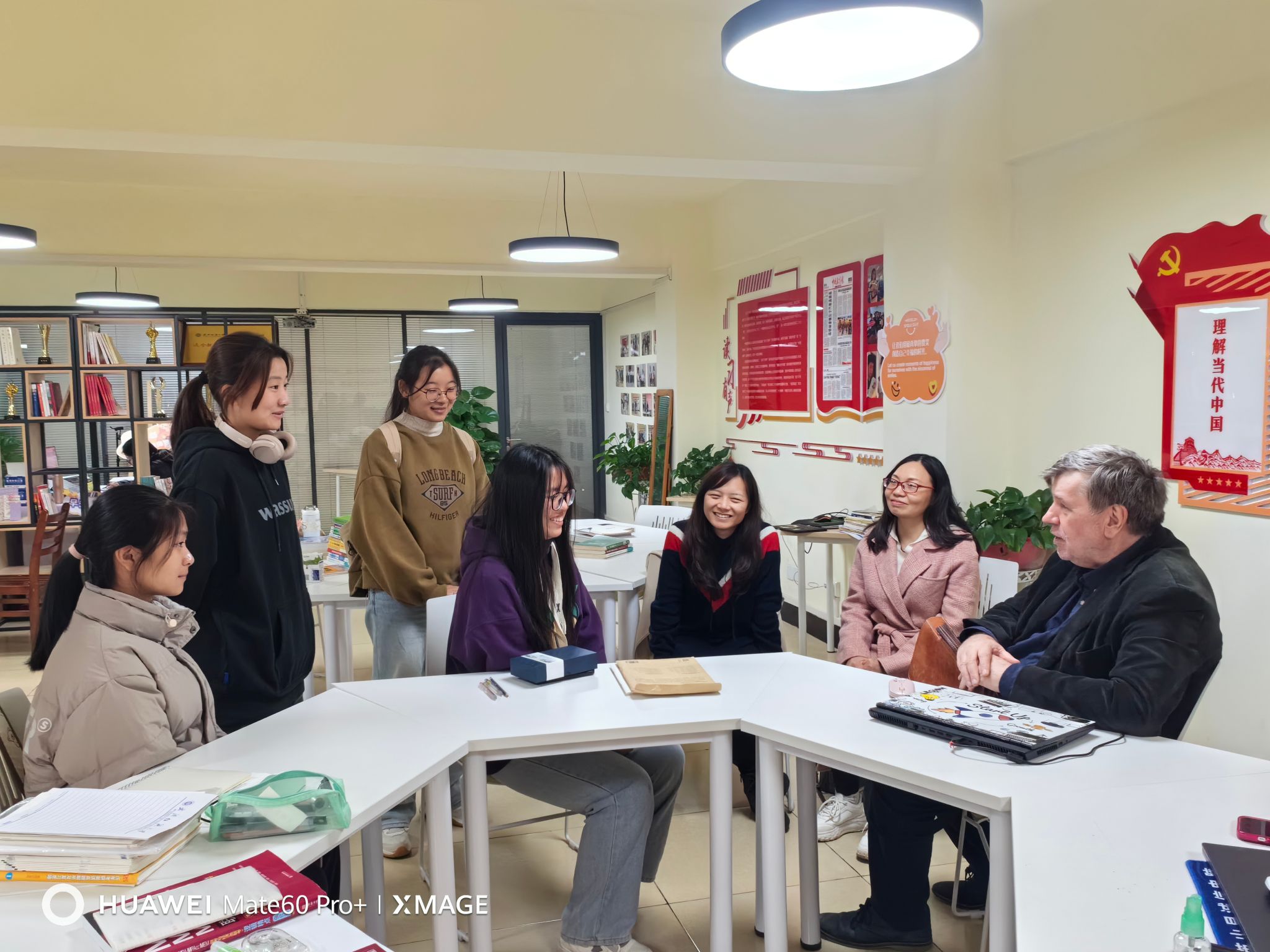 Johnston教授亲切幽默,善用简单的语言和实际例子来讲解复杂的概念。讲座开拓了员工的视野,加深了员工对翻译的理解和重新思考,同学们争相提问,与Johnston教授交流。讲座后,Johnston教授来到yl6809永利集团一站式员工成长服务站,与社区内的同学就文化的传播路径进行了探讨。