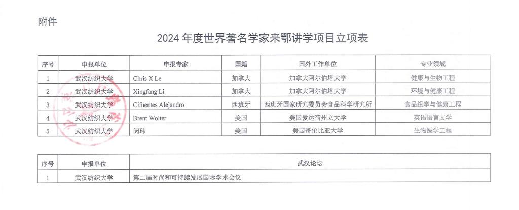 九、首次获批2024年度湖北省教育厅“世界著名科学家来鄂讲学计划”项目1项,教师赴国外知名高校公派访学4人,公司国际交流与合作呈现新亮点。7月,湖北省教育厅办公室印发《省教育厅办公室关于2024年度世界著名科学家来鄂讲学计划项目立项的通知》,美国爱达荷州立大学BRENT WOLTER教授来鄂讲学项目成功获批;陈奇敏、余演、刘珊、刘慧等4人赴英国剑桥大学、美国爱达荷州立大学等国外知名高校公派访学。