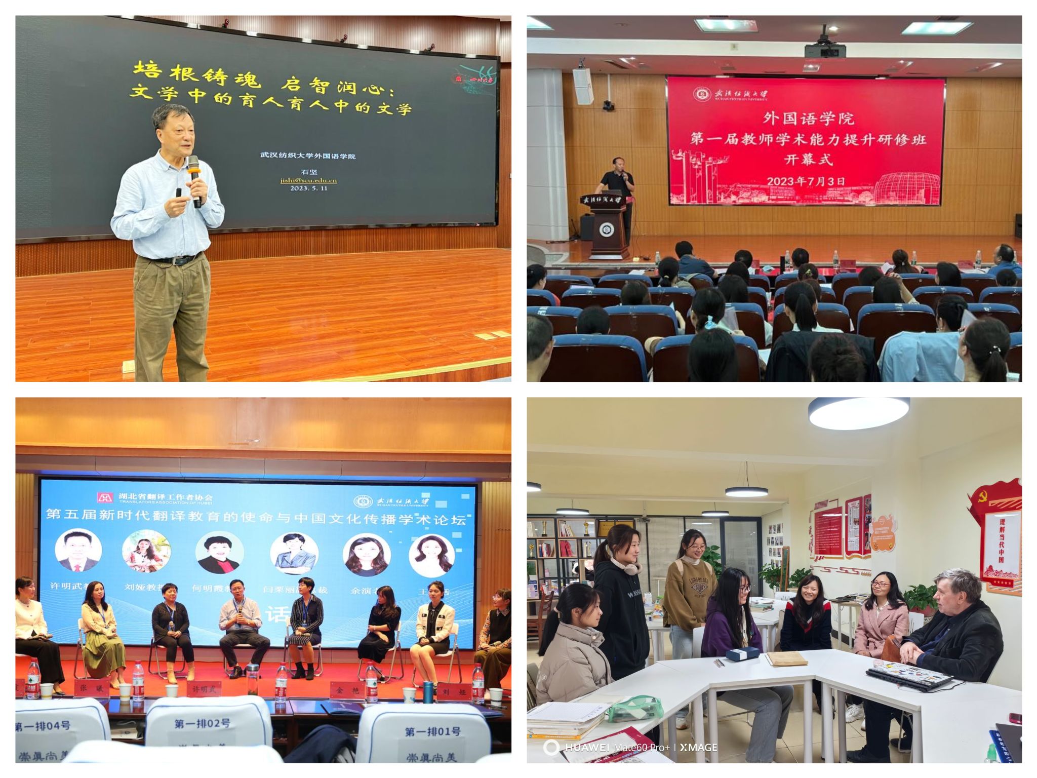 八、连续5年举办第五届新时代翻译教育的使命与中国文化传播学术论坛,首次举办暑期公司第一届教师学术能力提升研修班,邀请国内外专家学者来校举办学术讲座14次,选派教师参加国内外学术交流活动33人次,公司学术生态建设取得新进展。7月,举办公司第一届教师学术能力提升研修班,邀请6名国内知名专家学者授课,提升教师科研能力水平;10月,举办第五届新时代翻译教育的使命与中国文化传播学术论坛,邀请8名国内知名专家学者到会指导,深化对新时代翻译教育使命的认识,强化相关学科前沿问题的研究;全年邀请欧洲科公司院士、英国贝尔法斯特女王大学David Johnston教授和教育部高等公司英语专业教指委委员、全国翻译专业学位研究生教指委委员等专家学者举办“崇文讲堂”学术讲座14次;教师应邀参加湖北省高校“理解当代中国”外语教学工作研讨会等国内外学术交流活动33人次。