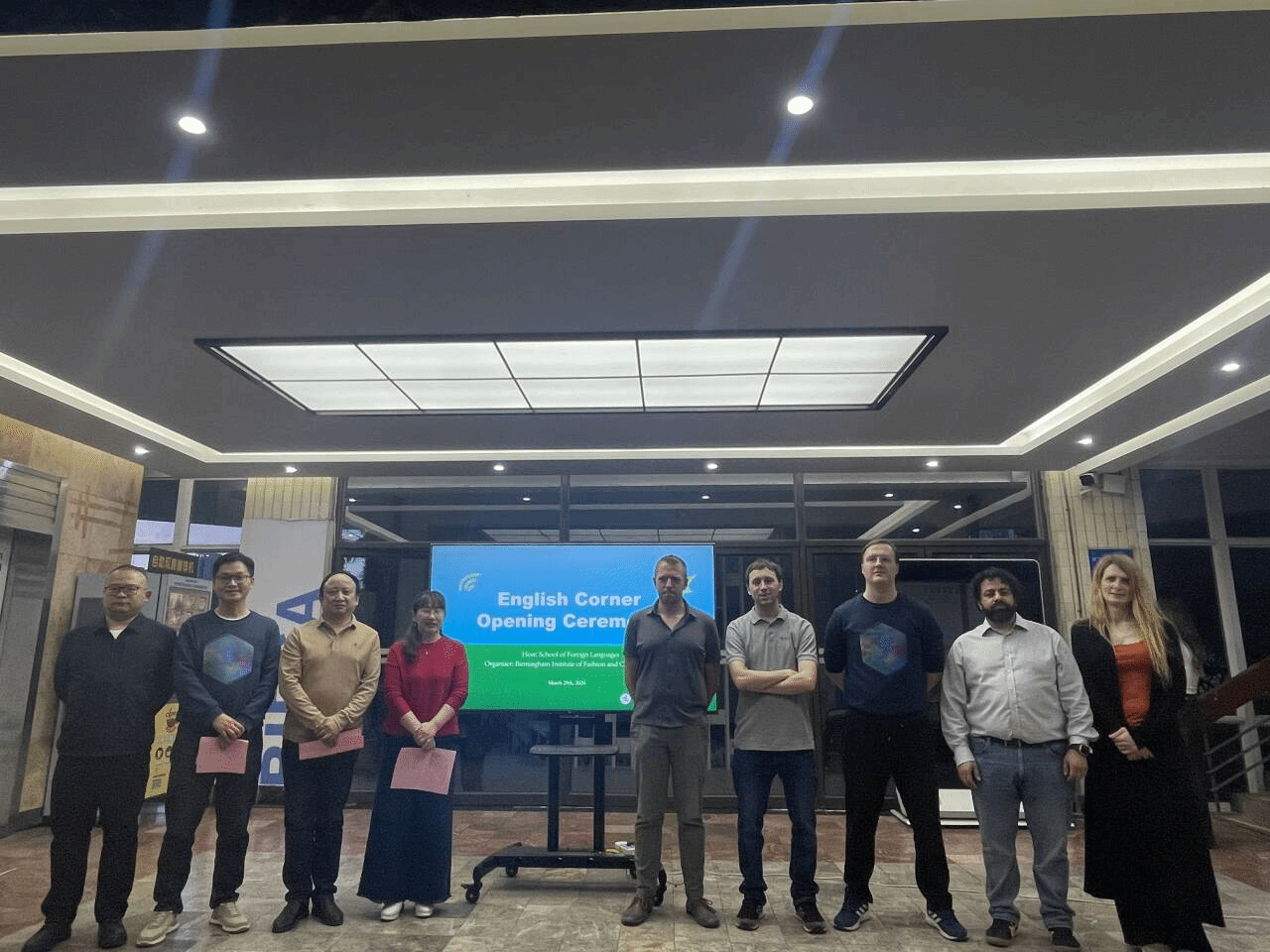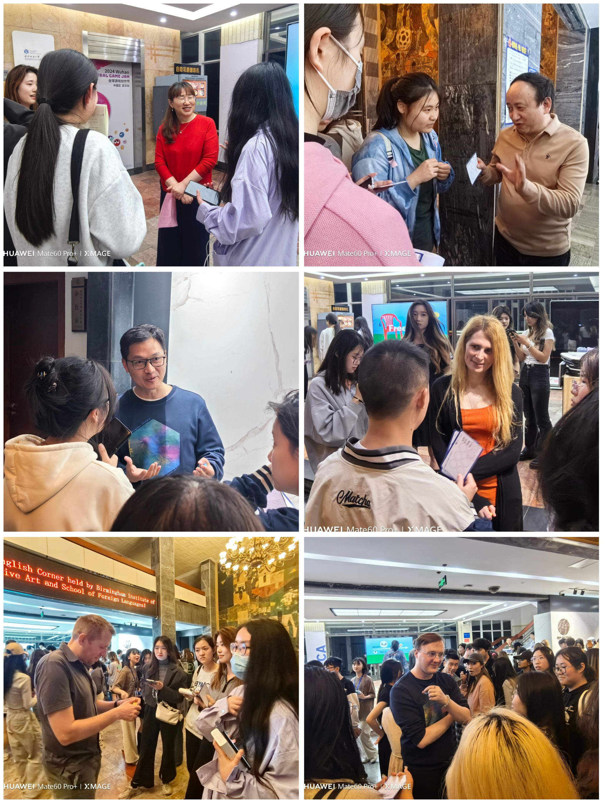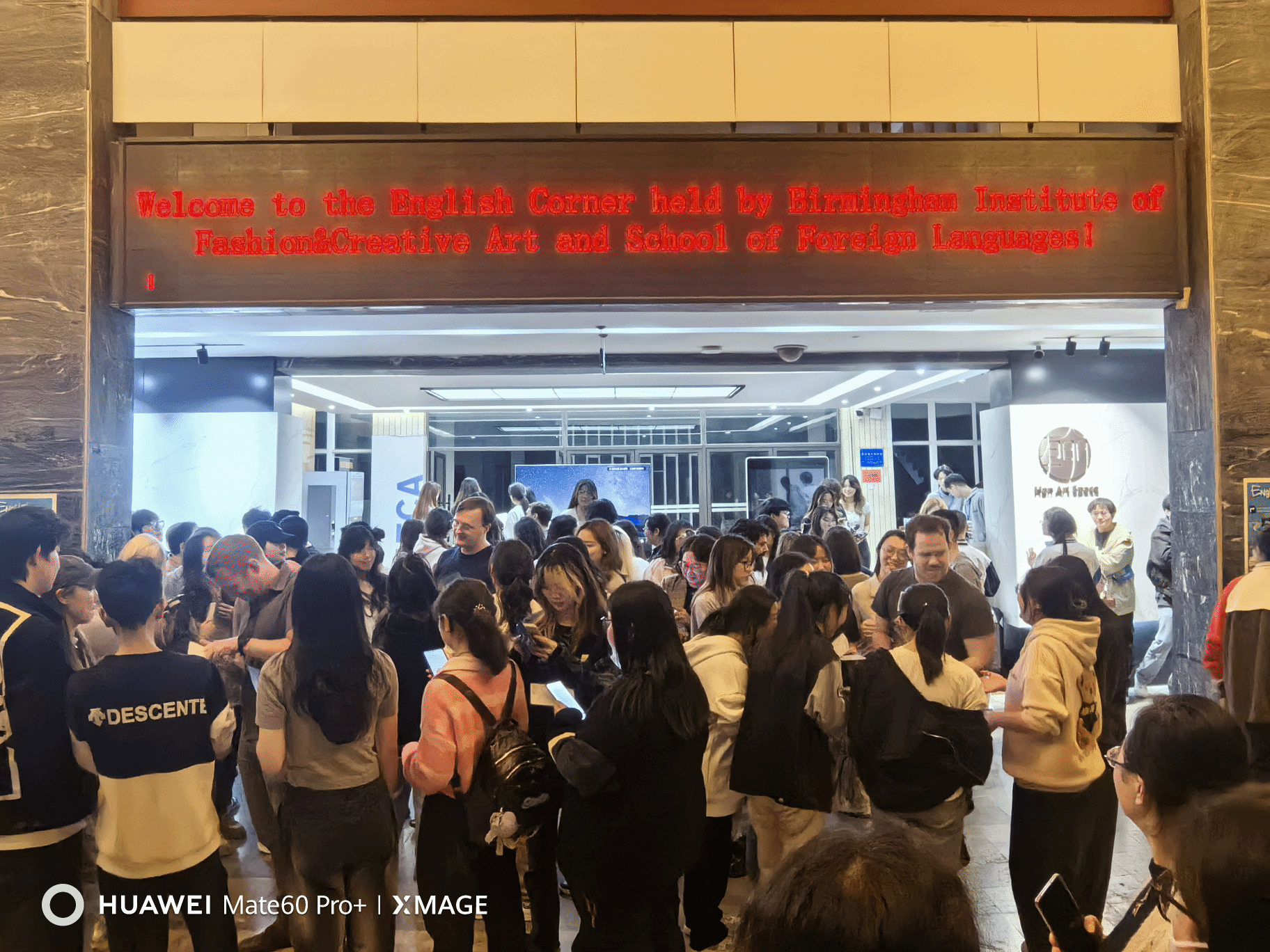 3月29日晚,由yl6809永利集团与伯明翰时尚创意公司联合举办的外语文化节南湖校区“英语角”在尚美楼中庭举行。yl6809永利集团经理谭燕保、副经理罗绮伦、党委副书记彭阳慈航,伯明翰时尚创意公司党委副书记李斗明、伯明翰城市大学语言外教Jack、Ben、Joe,专业外教Kira、Tychonas,以及yl6809永利集团伯明翰项目组全体老师出席。此次“英语角”是第十八届外语文化节的首场活动。