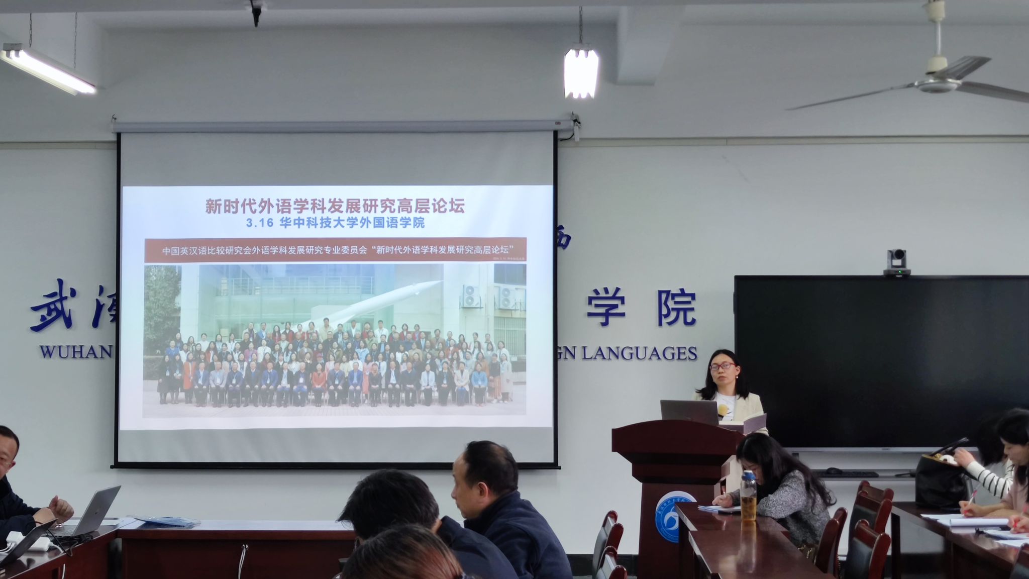 商务英语教研室主任吴志杰分享了她参加以“强国建设 外语何为”为主题的第八届全国高等公司外语教育改革与发展高端论坛的学习体会。本次论坛由北京外国语大学、教育部高等公司外国语言文学类专业教学指导委员会、教育部高等公司大学外语教学指导委员会和中国高等教育学会外语教学研究分会联合主办。高端论坛上,教育部高等教育司副司长武世兴强调了外语教育与“四新”有机融合的必要性、外语教育改革数字化的必然趋势,推动外语教育与人工智能双向互促的紧迫性。外语教学指导委员会的专家何莲珍、王文斌、李芒等强调了构建中国自主的外语人才培养体系和自主的应用语言学知识体系;拥抱人工智能、正确使用数字技术辅助教学的必要性。吴志杰结合专家们的发言,认为公司的专业建设要从教材变革、社会实践、数字化转型等角度进行发展,构建自主的外语人才培养体系。