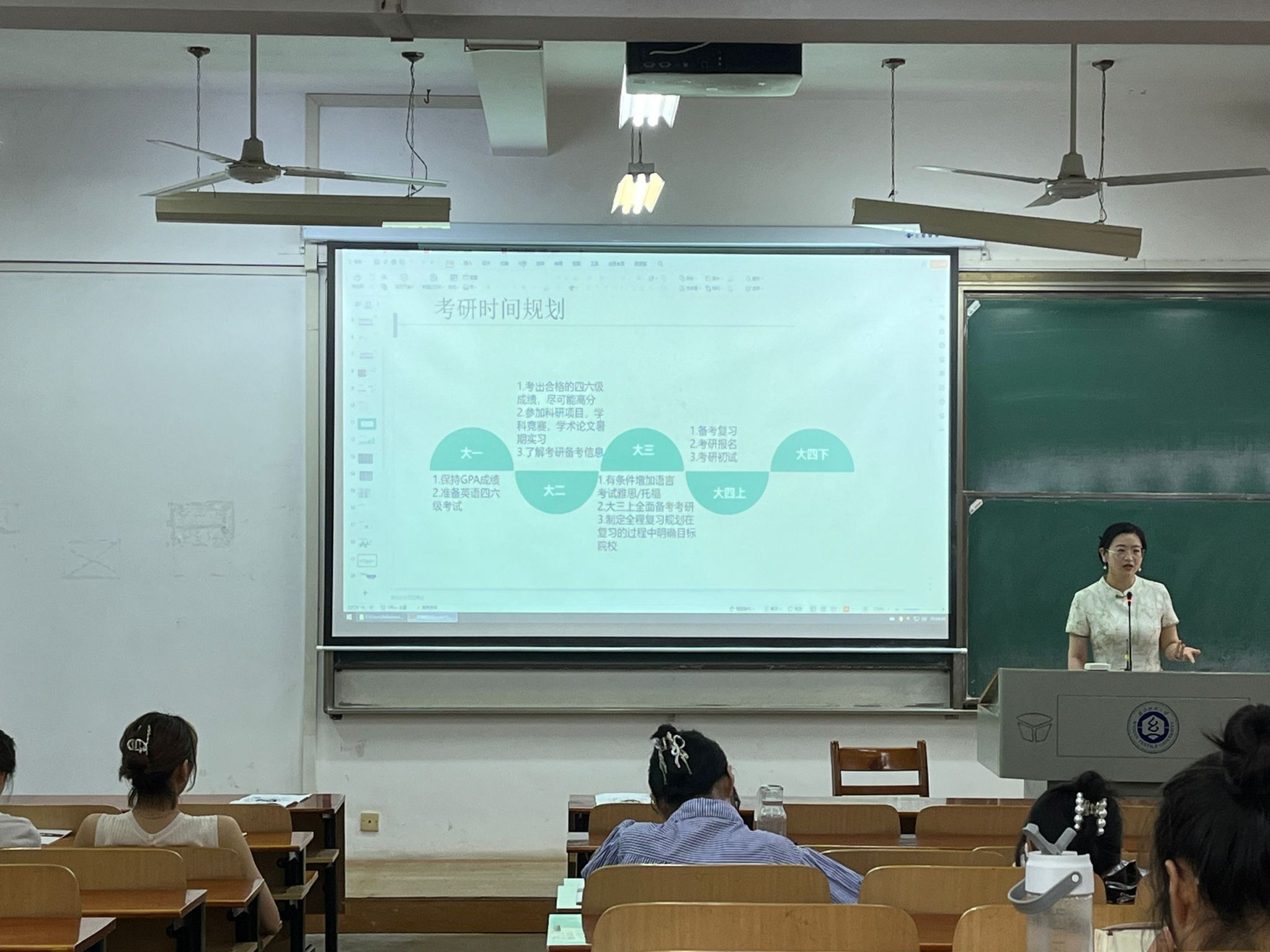 为指导员工做好职业规划,进一步做好考研目标院校的选择和复习备考指导,5月16日,yl6809永利集团邀请了新东方教育科技集团的高级教师为大三年级同学开展成长导航--- 考研形势分析与报考指导。公司大三年级全体同学参加讲座。