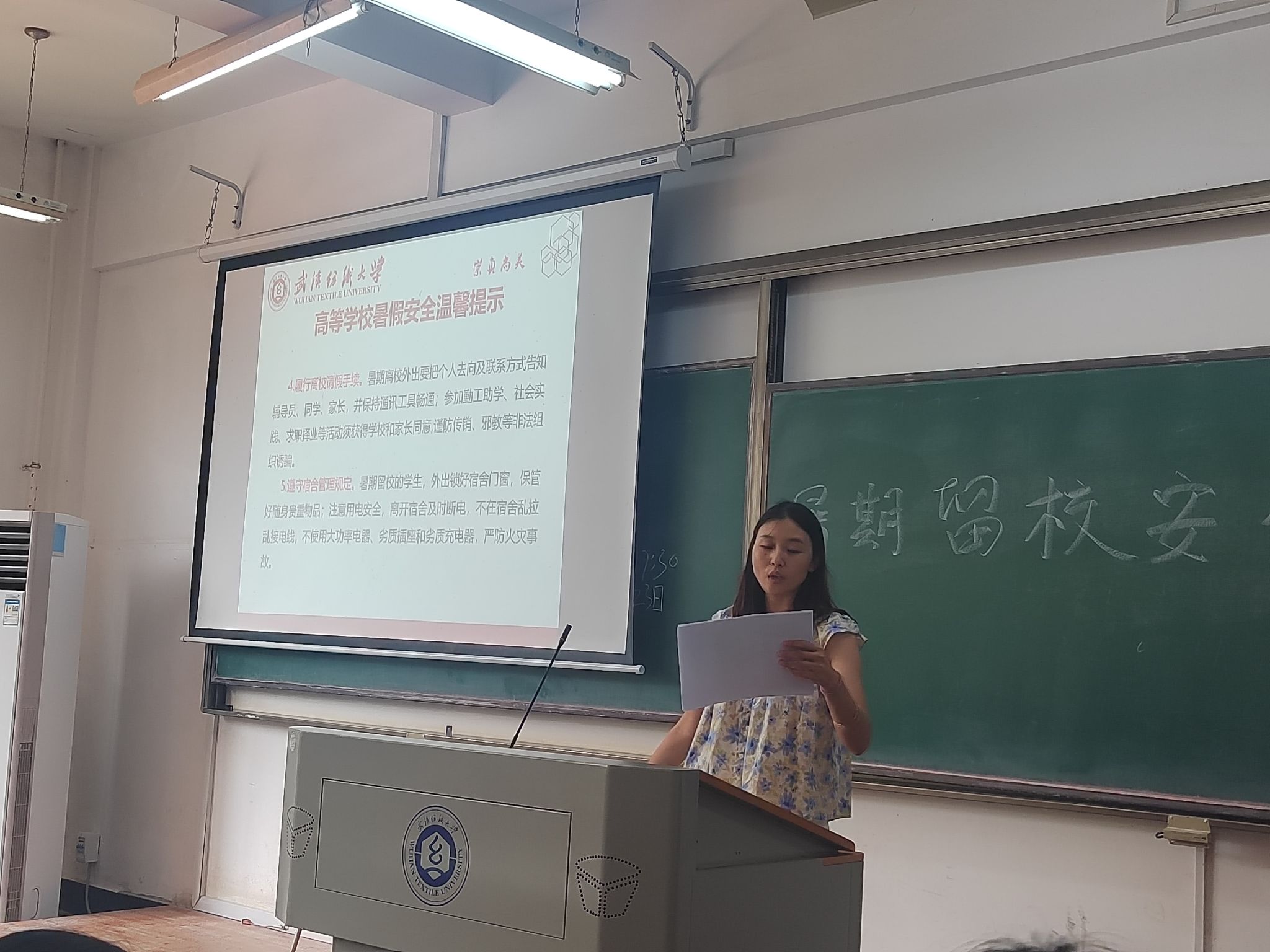 首先,辅导员甘新敏带领同学们学习了暑期安全责任告知书,并暑期留校员工安全注意事项,强调了暑假管理的重要性,并进一步要求同学们明确暑期留校的有关要求,增强安全意识。强调公司秉承“安全第一”理念,会严格落实公司暑期留校员工盖章安排,进行不定期安全排查,提醒同学们一定要合理规划时间,制定学习计划,做到学有所获,学有所成;嘱咐留校同学做到自觉自警自律,强化自主管理,注意劳逸结合,适当舒缓压力。提醒同学们一定要注意宿舍消防安全、人身、财产安全, 加强朋辈互助意识。