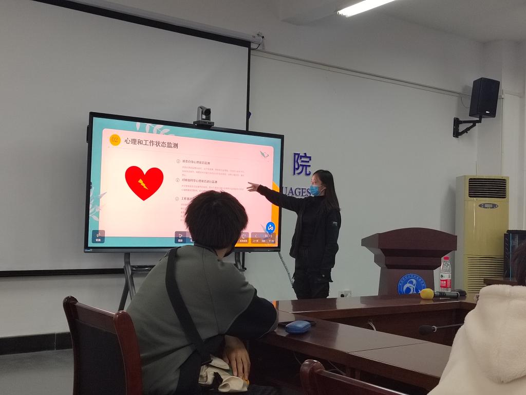紧接着,周曦老师向大家介绍了老员工常见心理问题的几种主要表现,以及对老员工产生的影响和合理的解决策略,并讲述了高校突发事件的部分案例,深化了班委们对校园突发事件的认知。她表示,作为班委,既要学会调整自己的情绪和工作状态,也要多关注同学的身心发展,对于受挫和困难同学要坚持通过多渠道进行合理帮扶。
